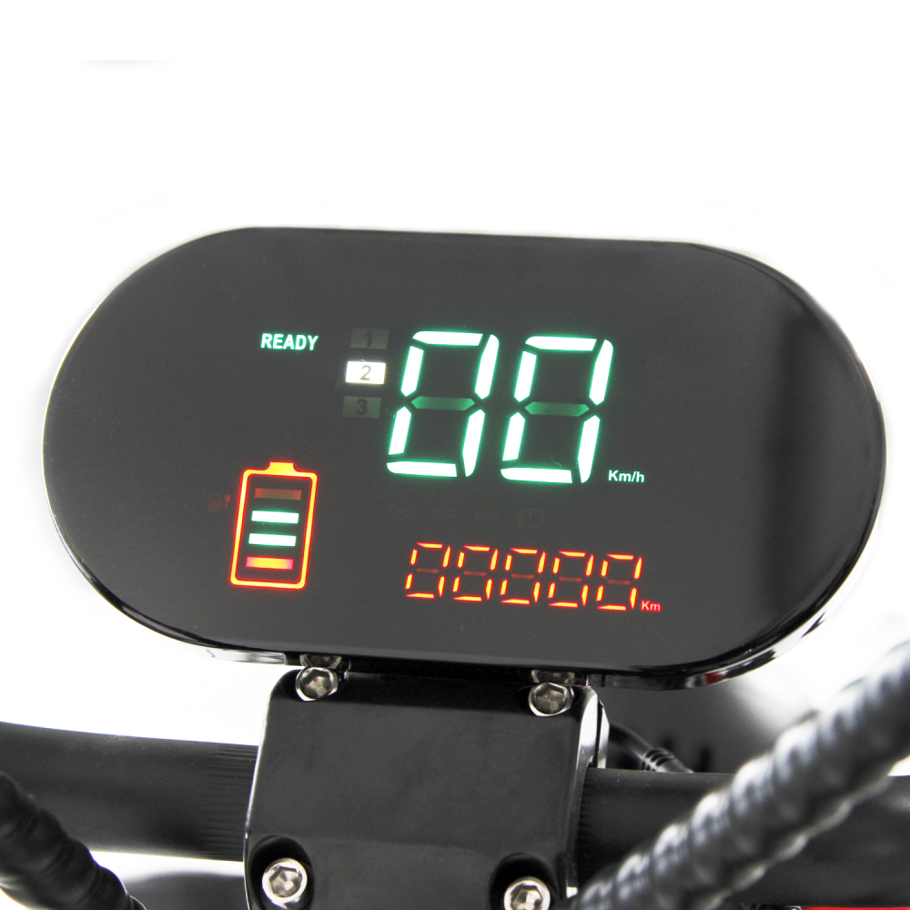 Благодаря батарее емкостью 60В 20Ah, Ikingi X7 PRO обеспечивает длительное время работы и позволяет проехать до 40-45 км на одном заряде. Таким образом, вы можете совершить длинные поездки без необходимости постоянно искать место для зарядки.