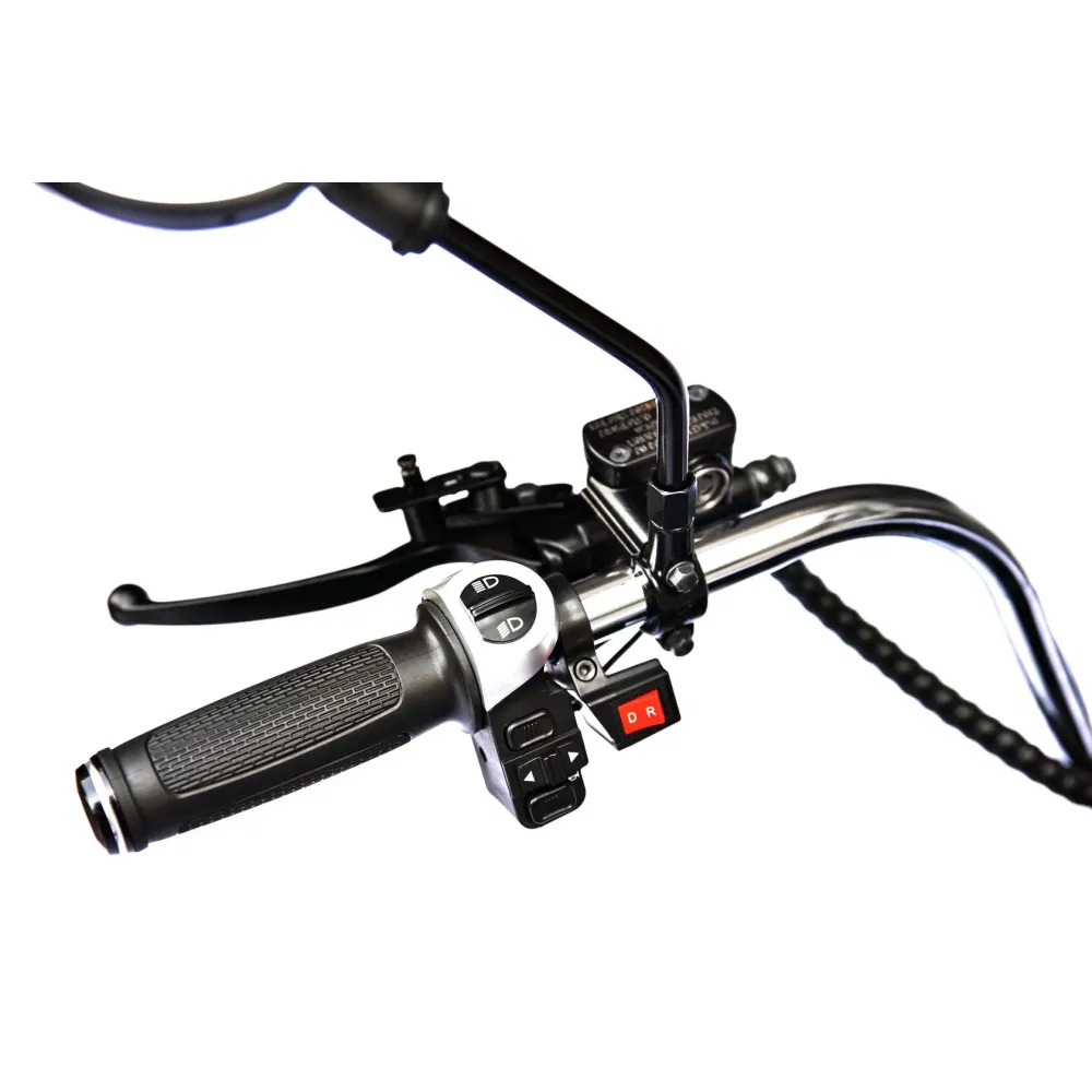 Трехколесный гибрид рассчитан для езды в пределах города и частного сектора. При мощности мотор-колес в 2000 Вт каждое модель способна развить скорость до 73 км/час и преодолеть расстояние до 49 км. Техника оснащена объемной корзиной, удобной для клади. Своевременность остановки гарантирована наличием профессиональной гидравлической тормозной системой. Удобство движения обеспечены большим комфортабельным седлом, повторяющим анатомические части тела и широкой платформой для ног. Практический опыт пользователей доказывает, усталость и проблемы с позвоночником при дальней езде исчезают.
