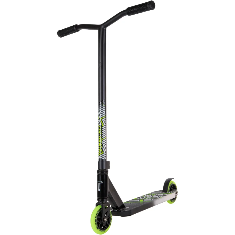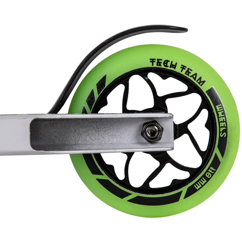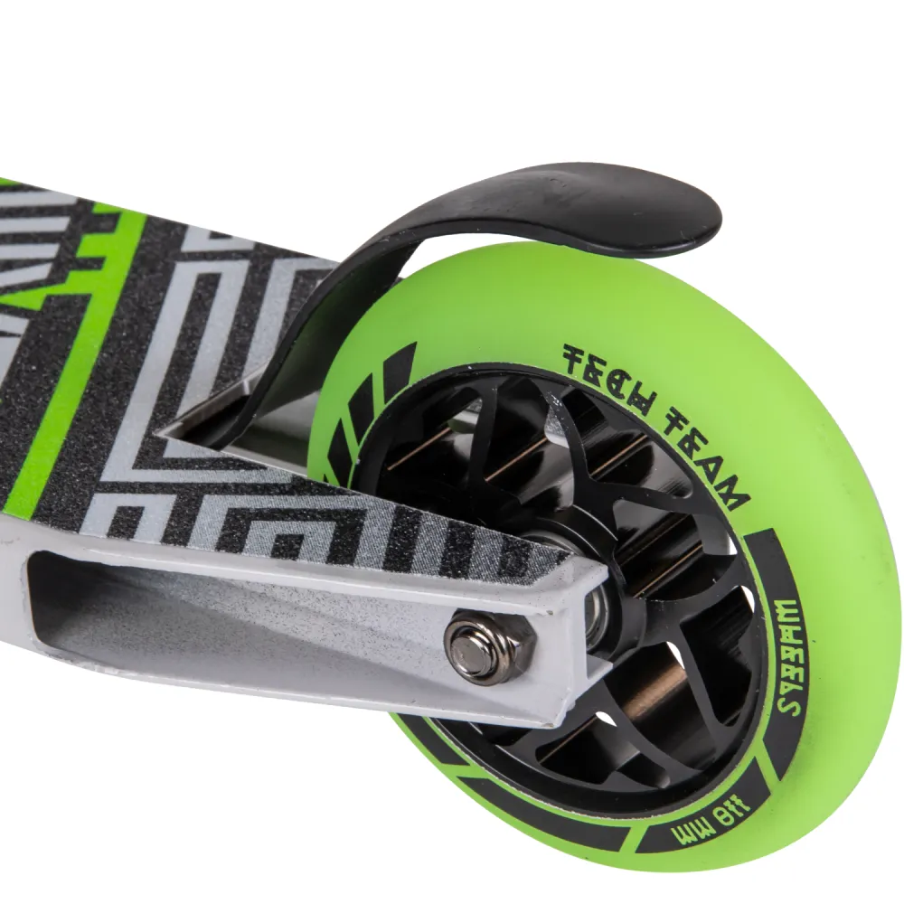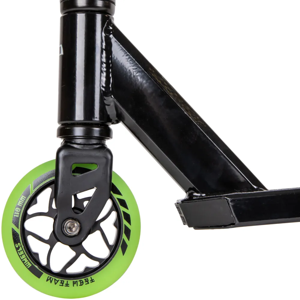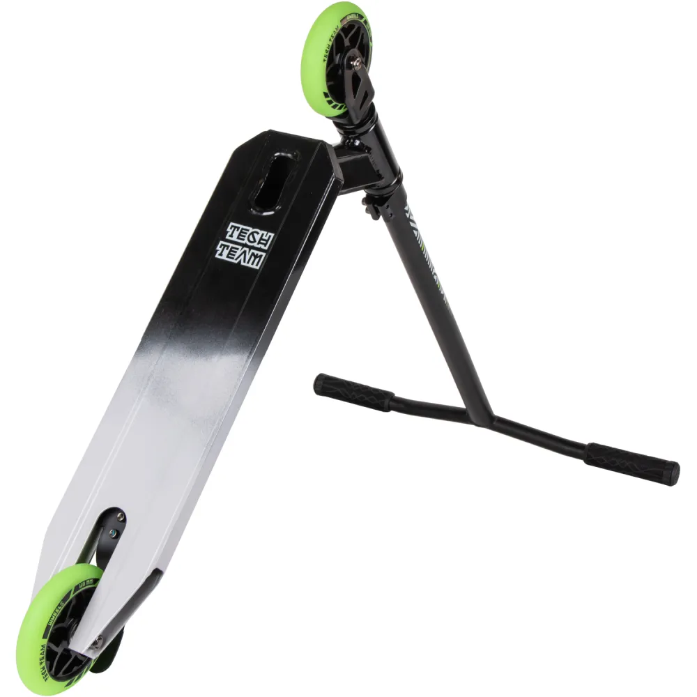 Модель трюкового самоката представлена компактными эргономичными характеристиками. При относительно небольшом весе (3,55 кг) дает возможность легко брать на прогулку и в путешествие. Широкая устойчивая платформа для ног была разработана производителем с учетом пожеланий самых требовательных райдеров. Покрытие платформы представлено нескользящей шкуркой, увеличивающей степень безопасности. Техника изготовлена из прочной стали, длительно сохраняющей свои первоначальные характеристики. Комфорт модели обеспечивается регулируемым рулем, что дает возможность передвижения без ощущения дискомфорта. Яркие светящиеся колеса делают технику узнаваемой.